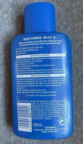 alte Nivea Sonne, Filter 8, UV- Sonnenschutz Feuchtigkeits-Milch