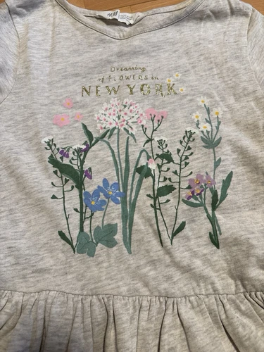 Kleid, H&M, Größe 134/140, grau-beige meliert mit Blumen