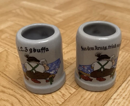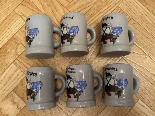 6 Schnapsgläser, Bierkrug Form, Höhe ca. 5,5 cm, Bayern Sprüche
