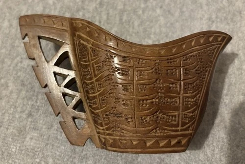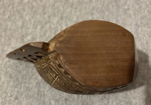 Ein handgeschnitztes Holzgefäß in Form eines stilisierten Wikingerbootes. Reich verziert mit traditionellen nordischen Mustern und feinen Kerbschnitt-Details. Vermutlich aus Skandinavien (Norwegen/Finnland), handgefertigt um die 1970er-Jahre. Schöne, warme Patina Material: Hartholz (vermutlich Birke oder Erle), geölt Zustand: Sehr guter Vintage-Zustand mit minimalen Gebrauchsspuren, keine Risse oder Absplitterungen. Hinweis: Deko-/Sammlerobjekt, Oberfläche nicht für Lebensmittel geprüft. -Länge oben ca. 16 cm -Länge unten am Boden ca. 7 cm -Höhe ca. 10 cm ( höchste Stelle ) -Breite ca. 6 cm ( breiteste Stelle oben), unten ca. 4,5 cm breiteste Stelle